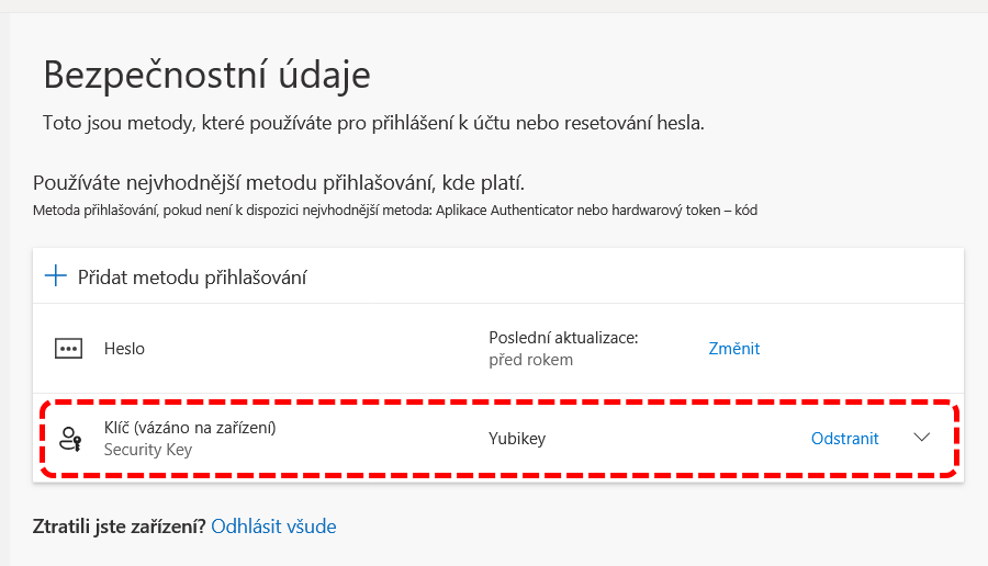 V tomto návodu nastavíme hardwarovou klíčenku (token/klíč) jako druhý faktor.