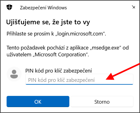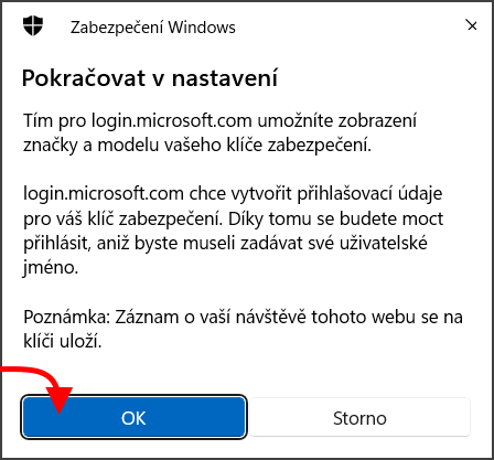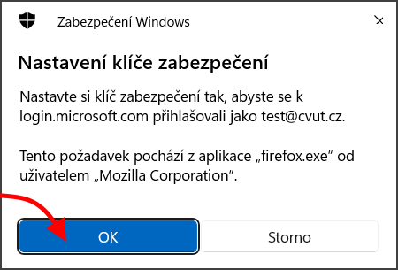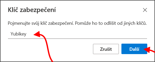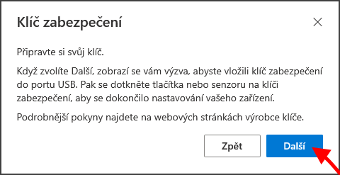 🌐 ( 7 ) Nyní proběhne nastavení klíče (dialogová okna se mohou lišit dle OS a prohlížeče - Firefox / Chrome / Edge...)