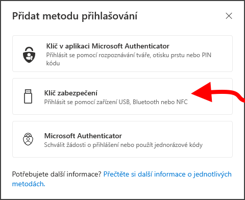 🌐 ( 3 ) Zvolte možnost + Přidat metodu přihlašování